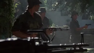 Коммандо (1985) — динамичный боевик о бывшем бойце элитного подразделения Джоне Матриксе, который давно оставил службу и живет вдали от большой политики вместе с дочерью. Спокойная жизнь рушится, когда прошлое вновь настигает героя и вынуждает его вступить в гонку со временем. Фильм быстро задает высокий темп, сочетая суровый экшен, харизму главного героя и напряжение постоянной погони.